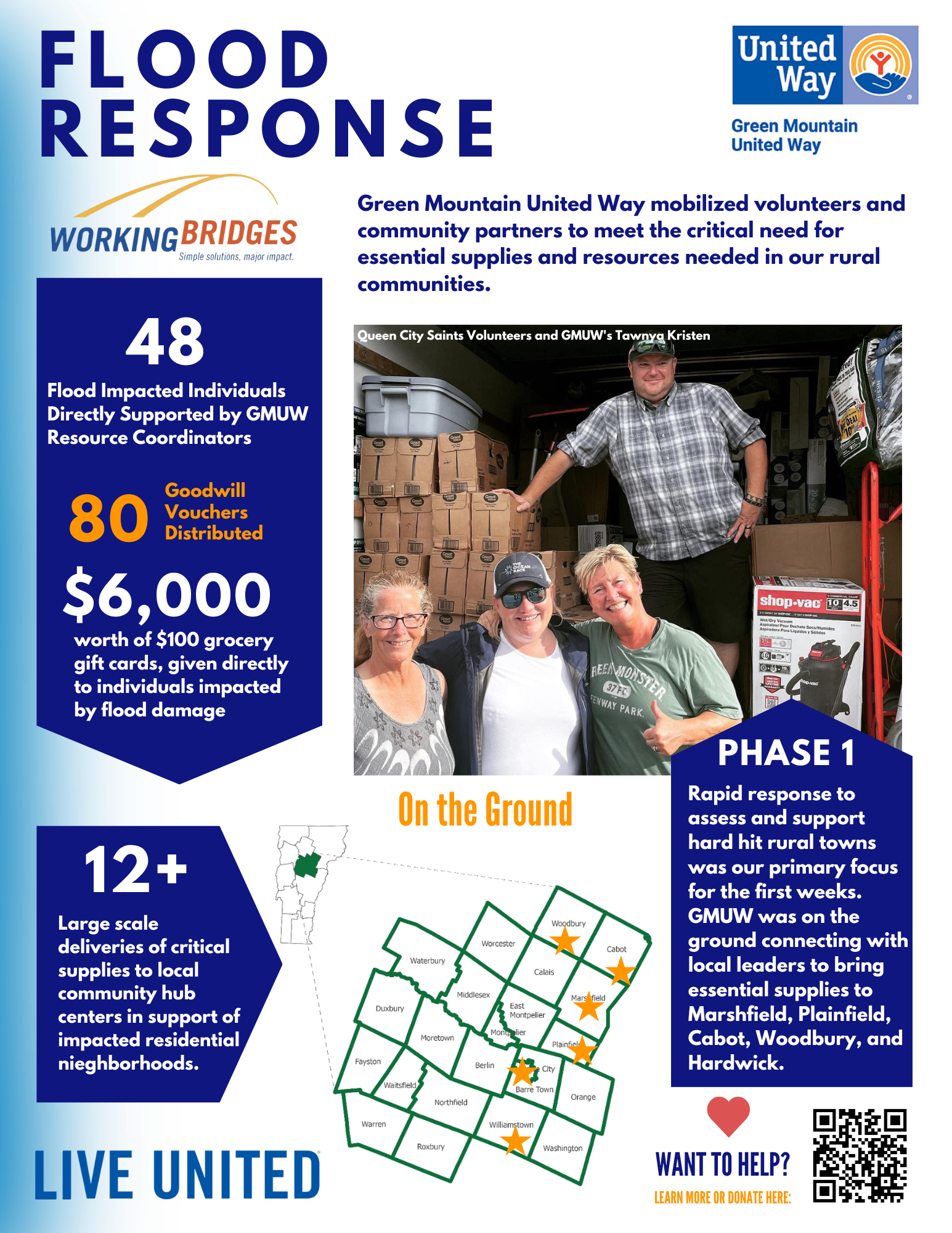It is our belief that, through the work of Green Mountain United Way, we can increase the organized capacity for people to care for one another. We seek to improve the overall quality of life in the communities we serve. As a leader in the community we work to bring together organizations and people to rejoice in the great strides our communities have made and to seek new ways to solve community problems.